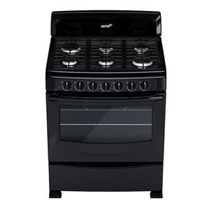 Estufa al piso 30'' en color Negro con la que sorprenderás a tus seres queridos. Imagínate cocinando sus platillos favoritos en esta estufa equipada con 3 parrillas de alambrón, 6 quemadores de aluminio y horno de 5.1 p³ con ventana extragrande.