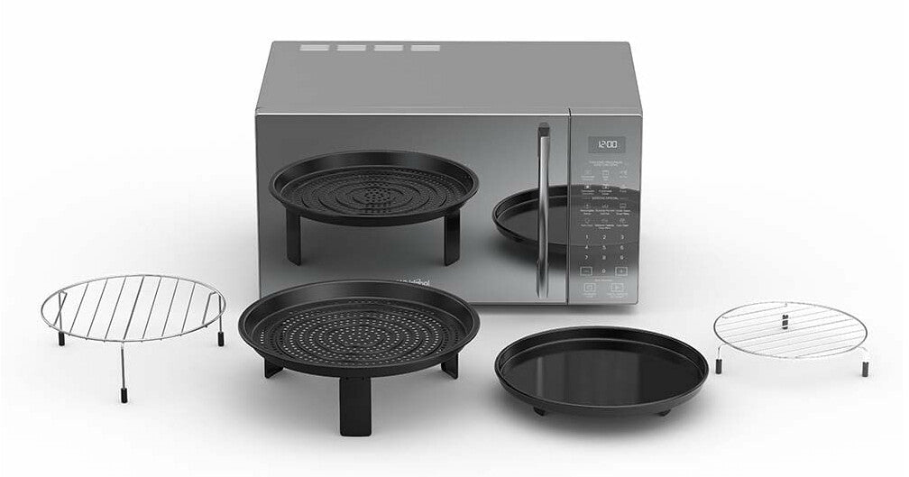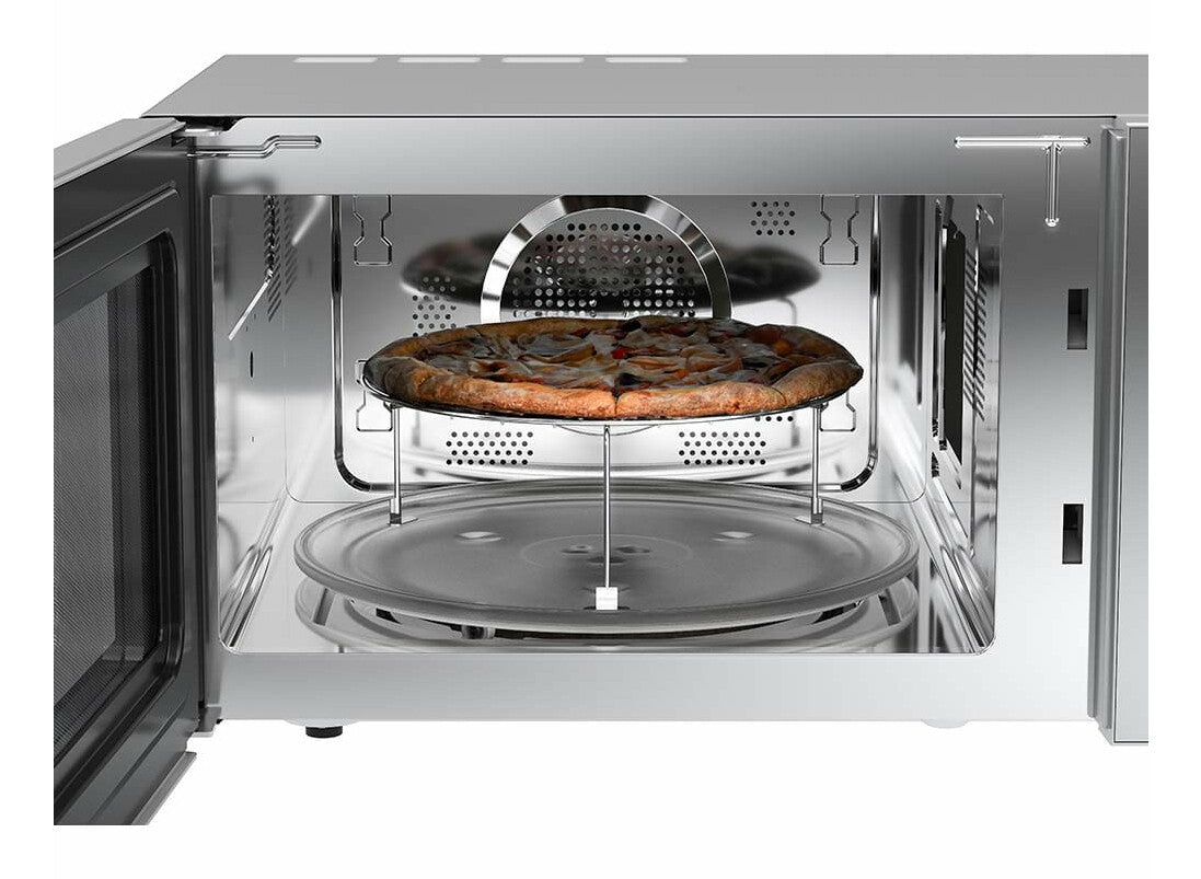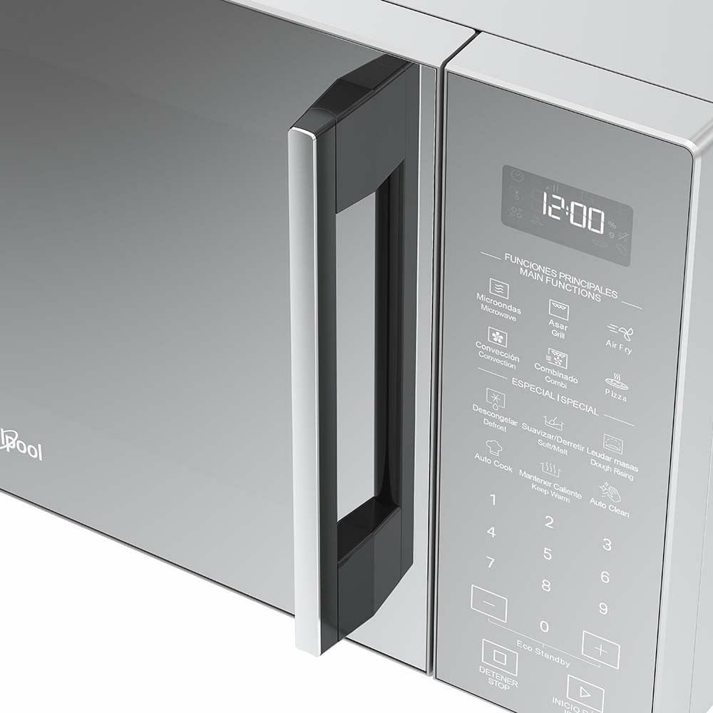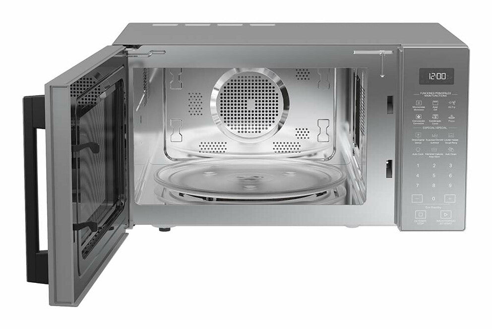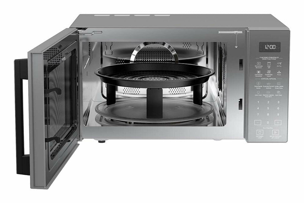 4 modos de cocción en 1 horno: microondas, AirFry, convección y dorar (los accesorios para cada modo que vienen incluidos). Opción Combi, función Auto Cook con +20 funciones predeterminadas, interior de acero inoxidable y función Auto Clean.