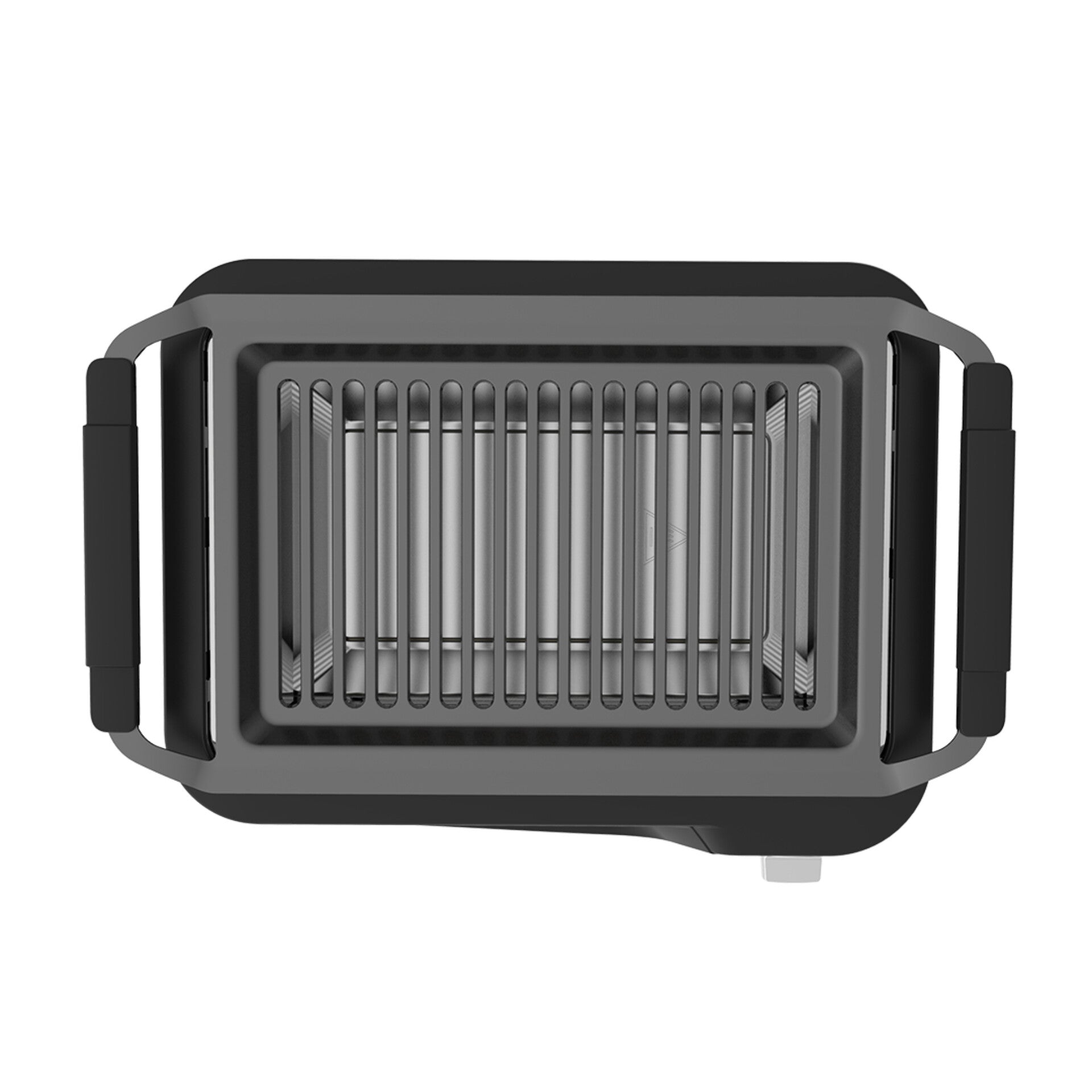 Soy la Parrilla Eléctrica perfecta para tus asados dentro de casa, gracias a mi tecnología Infrarroja no produzco humo y además logro crear marcas perfectas de parrilla de diamante en tus cortes. Cuento con una canasta de fácil limpieza por su cubierta antiadherente y una bandeja de goteo. Alcanzo hasta los 230°C en tan solo 6 minutos.