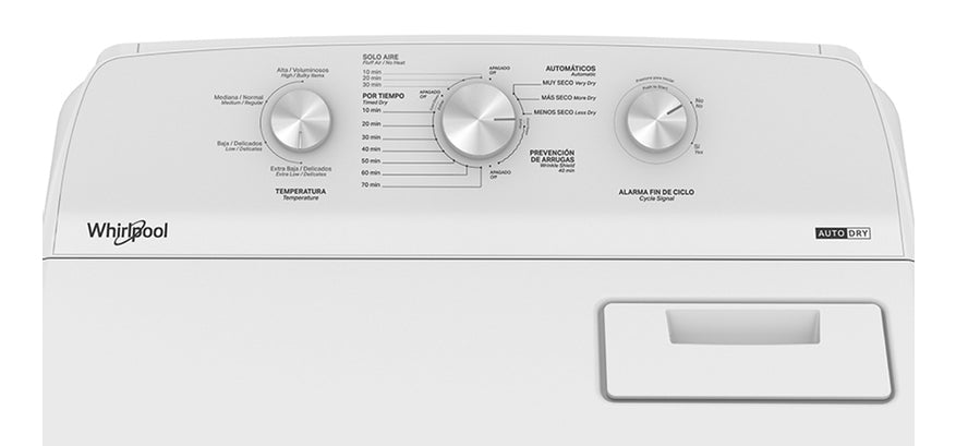 AutoDry, detecta cuando la ropa alcanza el secado óptimo y detiene el ciclo para mayor ahorro de energía. Opciones de secado: nivel de secado, por tiempo, secado con aire sin calor y prevención de arrugas. Filtro atrapa pelusa y 4 temperaturas