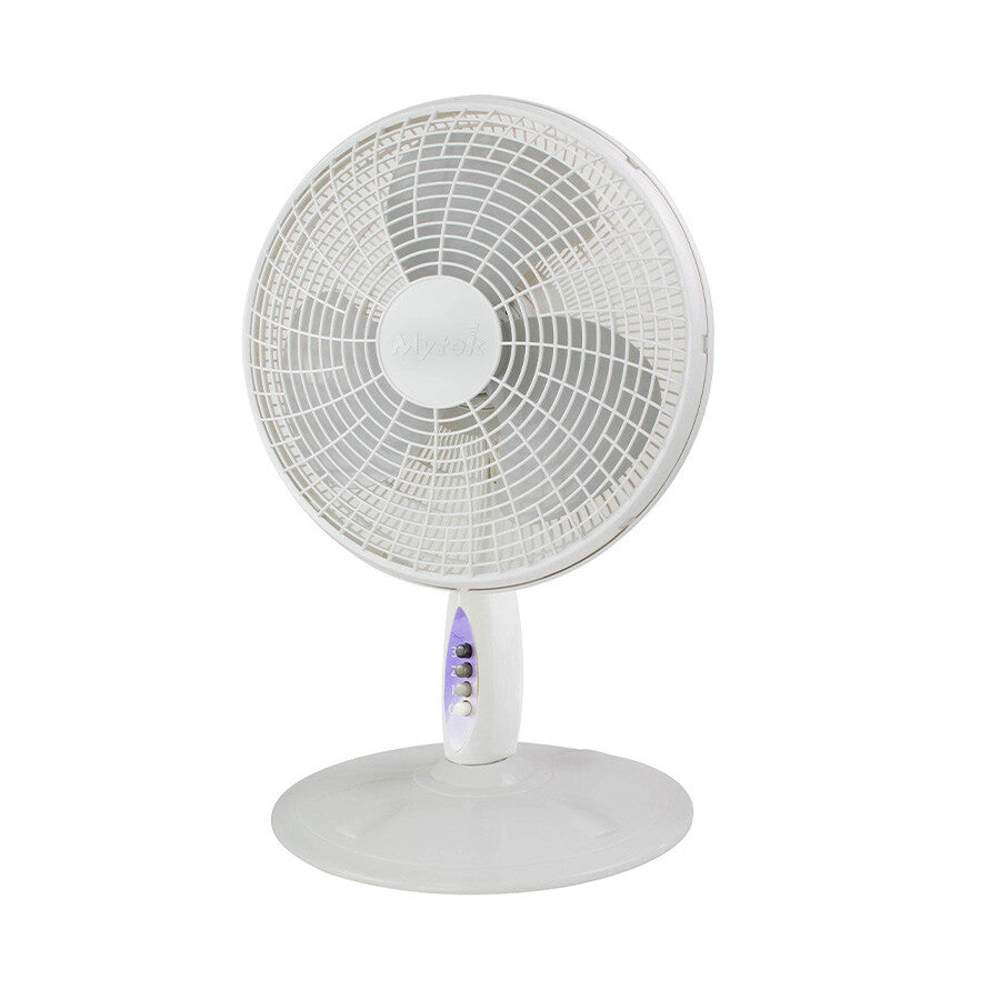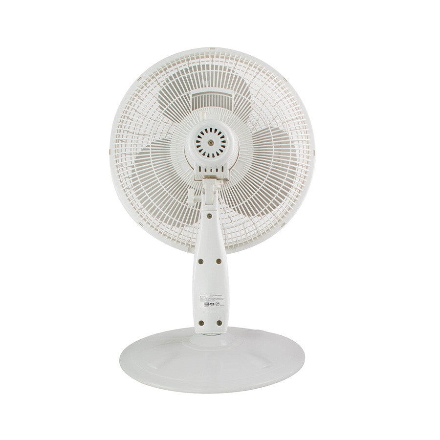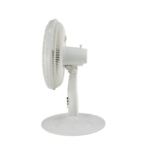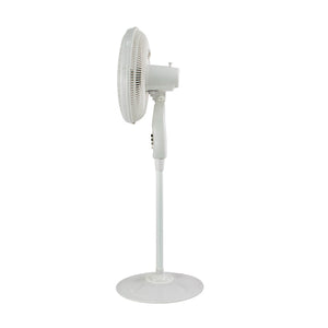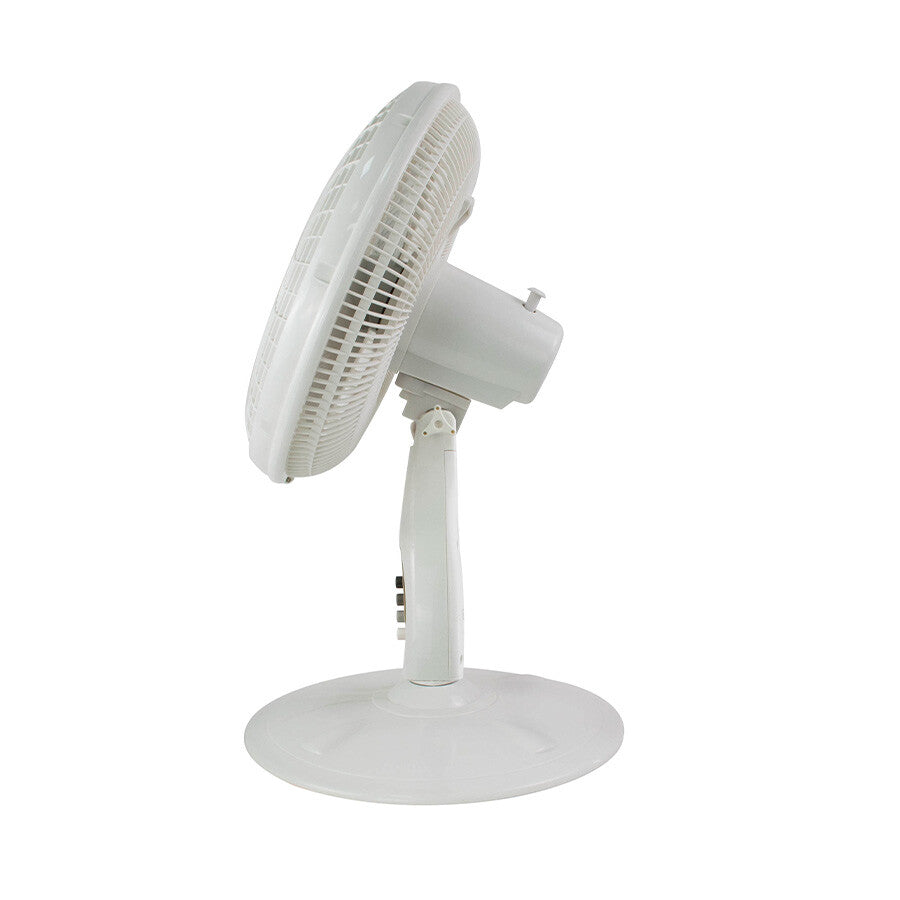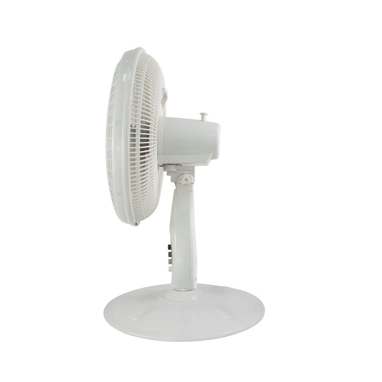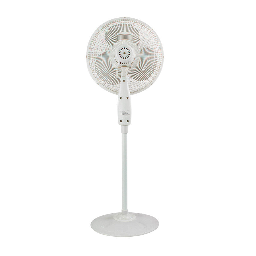 Este ventilador de 16″ es para uso en interiores, disponible en color blanco. Tiene 3 velocidades diferentes con una oscilación de 90 grados y un fácil ajuste de inclinación para un flujo de aire. Con piezas adjuntas, podría ser un ventilador de piso, de pedestal o de pared.