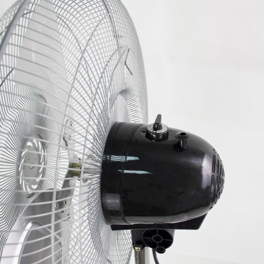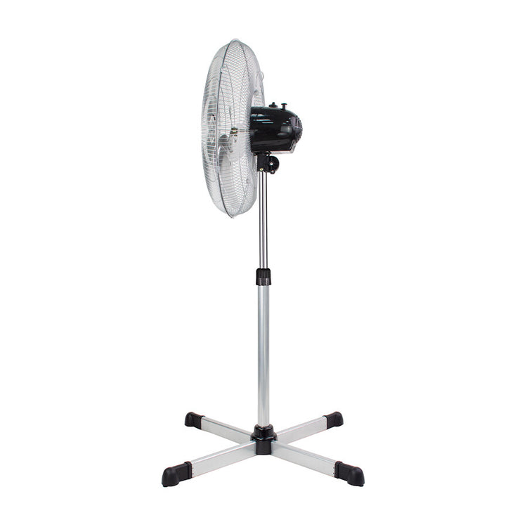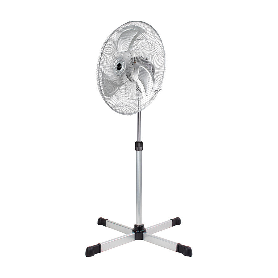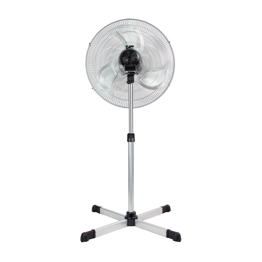 Este circulador de aire de 20″ es para uso en interiores, disponible en color metálico. Tiene 3 velocidades diferentes con oscilación de 90 grados y ajuste de altura para un flujo de aire, incluida base rígida, parillas y aspas fabricadas en metal.
